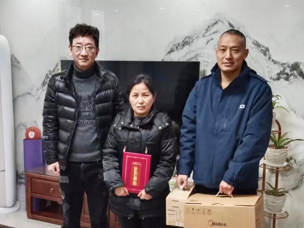 1月14日,豐源高科組織慰問年度評優(yōu)評先員工代表,互感器車間生產(chǎn)副總王慶虎、成套車間生產(chǎn)副總童政帶領(lǐng)相關(guān)部門負責人一同前往員工家里,向他們致以新春的美好祝福,并送去過節(jié)慰問禮品。